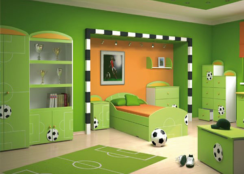 Bạn lo không gian bên ngoài không an toàn cho bé, vậy nếu phòng đủ rộng tại sao không tạo luôn 1 không gian vui chơi cho bé ngay trong phòng của mình với mầu xanh của sân cỏ ?