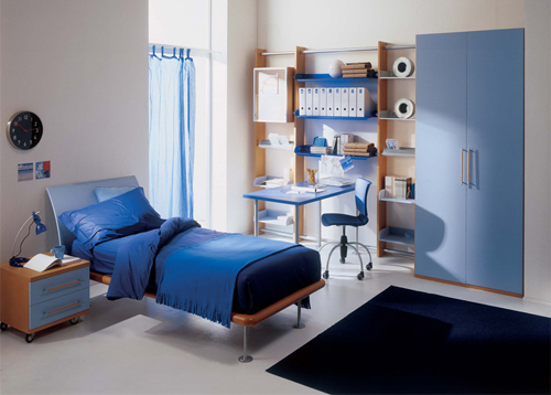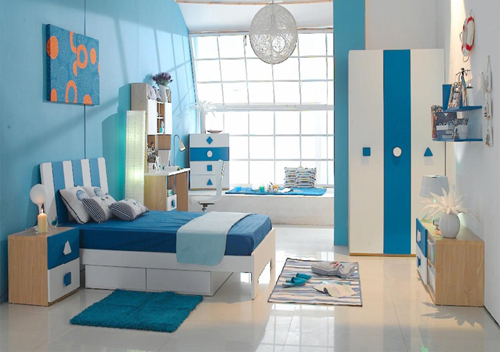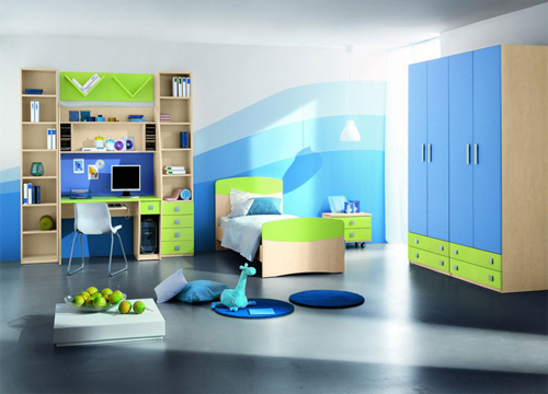 Mầu xanh rất phù hợp cho phòng bé trai, có khá nhiều gam mầu xanh cho bạn lựa chọn
